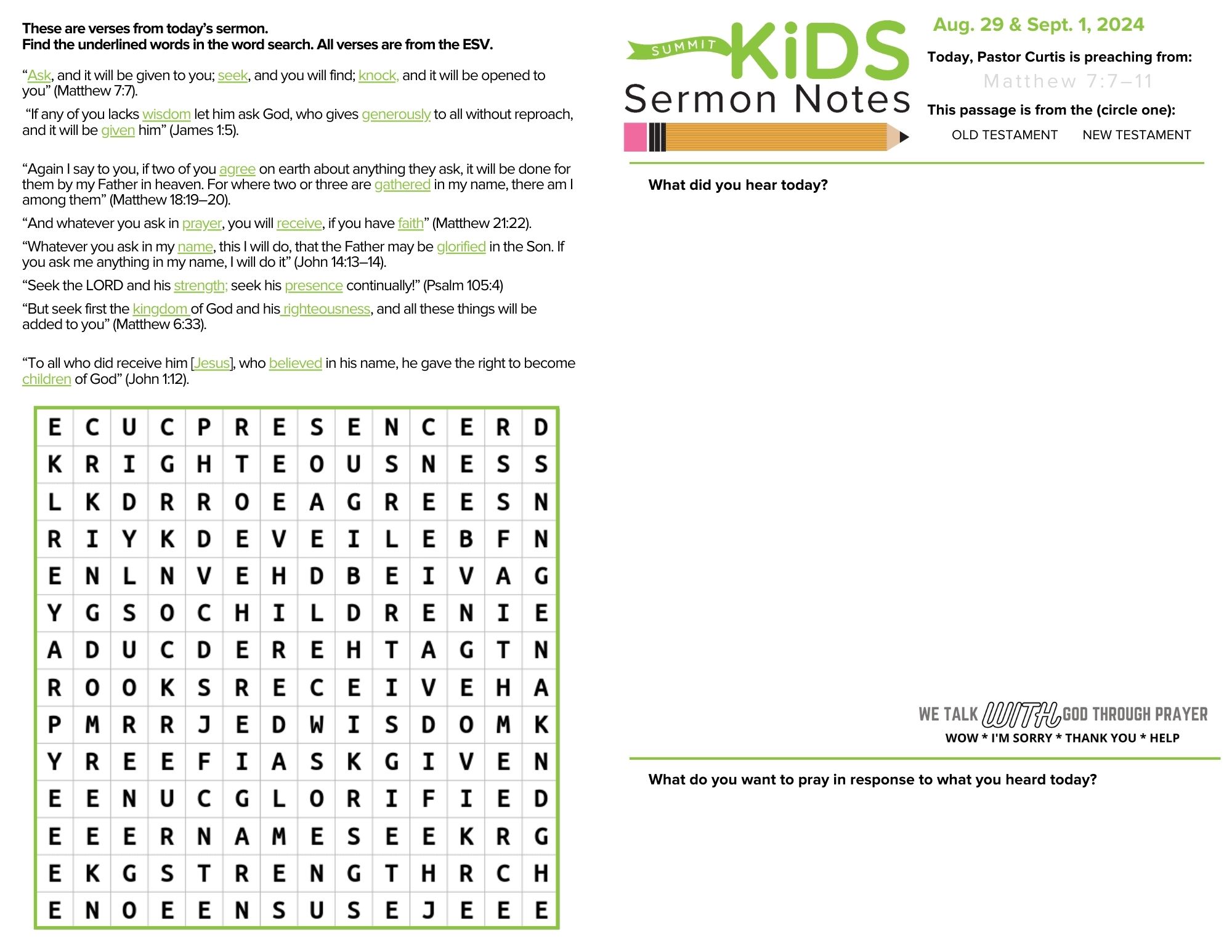 我们在生活中都会遇到一些似乎无法驾驭的情况,在这些情况下,我们根本就缺乏做出最佳决定的智慧。在这种时候,我们可能会认为,只要我们做了足够多的研究或与足够多的人交谈,我们就会拥有所需的辨别力。实际上,真正的智慧只来自上帝,他邀请我们向他祈求。在本周马太福音第七章的信息中,柯蒂斯牧师向我们展示了如何通过祷告寻求上帝,把他当作乐于将美好礼物赐给儿女的天父。