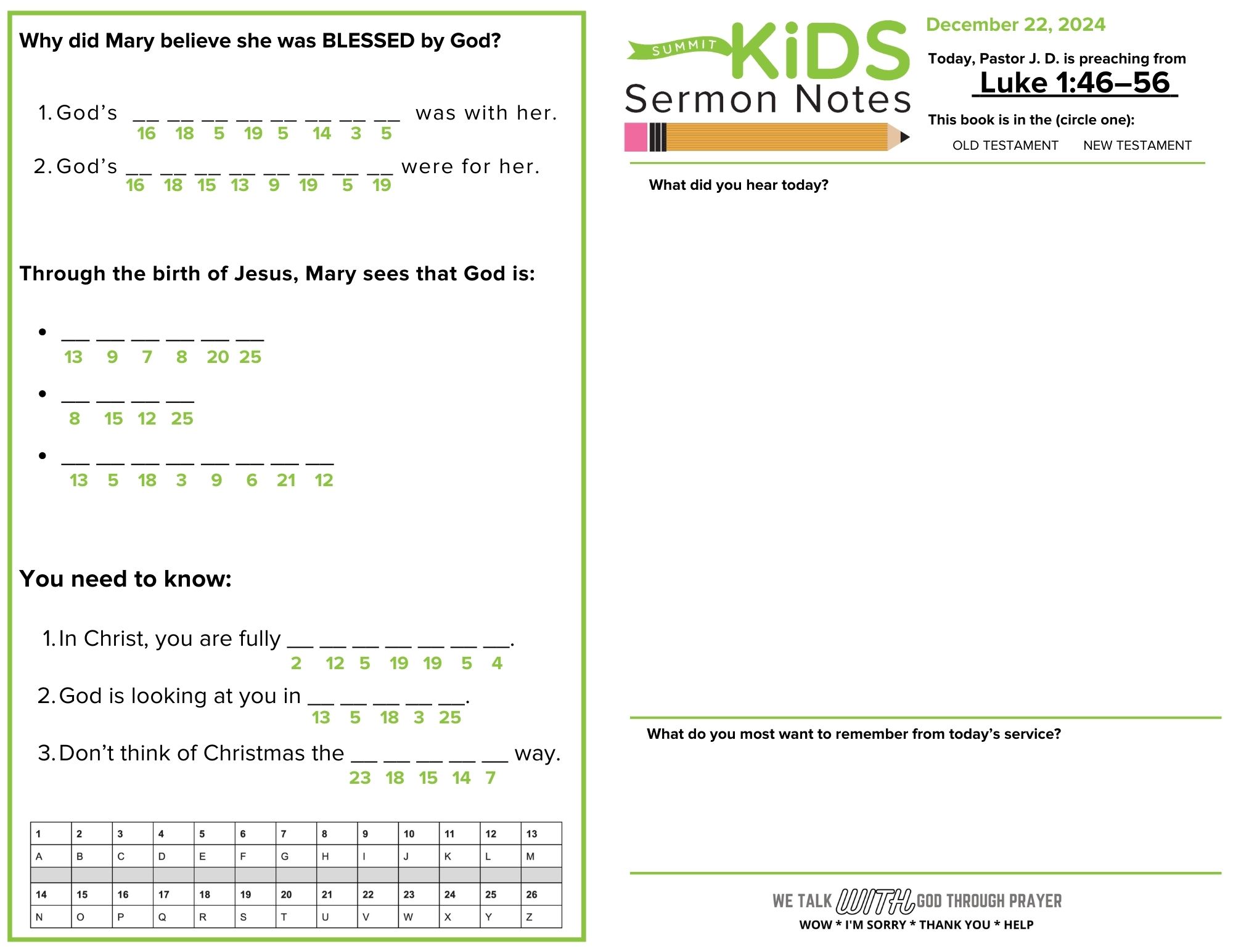 随便问一个人他们是如何定义 "有福 "的,很可能会与伊利莎白、天使加百列,甚至马利亚自己的定义大相径庭。在本周《路加福音》第一章的信息中,J.D. 牧师将带领我们学习马利亚对上帝的赞美和感恩之歌--《圣母颂》。我们从这首歌中学到的真理--主要基于《诗篇》--指向一位上帝,他的同在和应许支撑着我们的希望,即使在感觉不像圣诞节的时候。