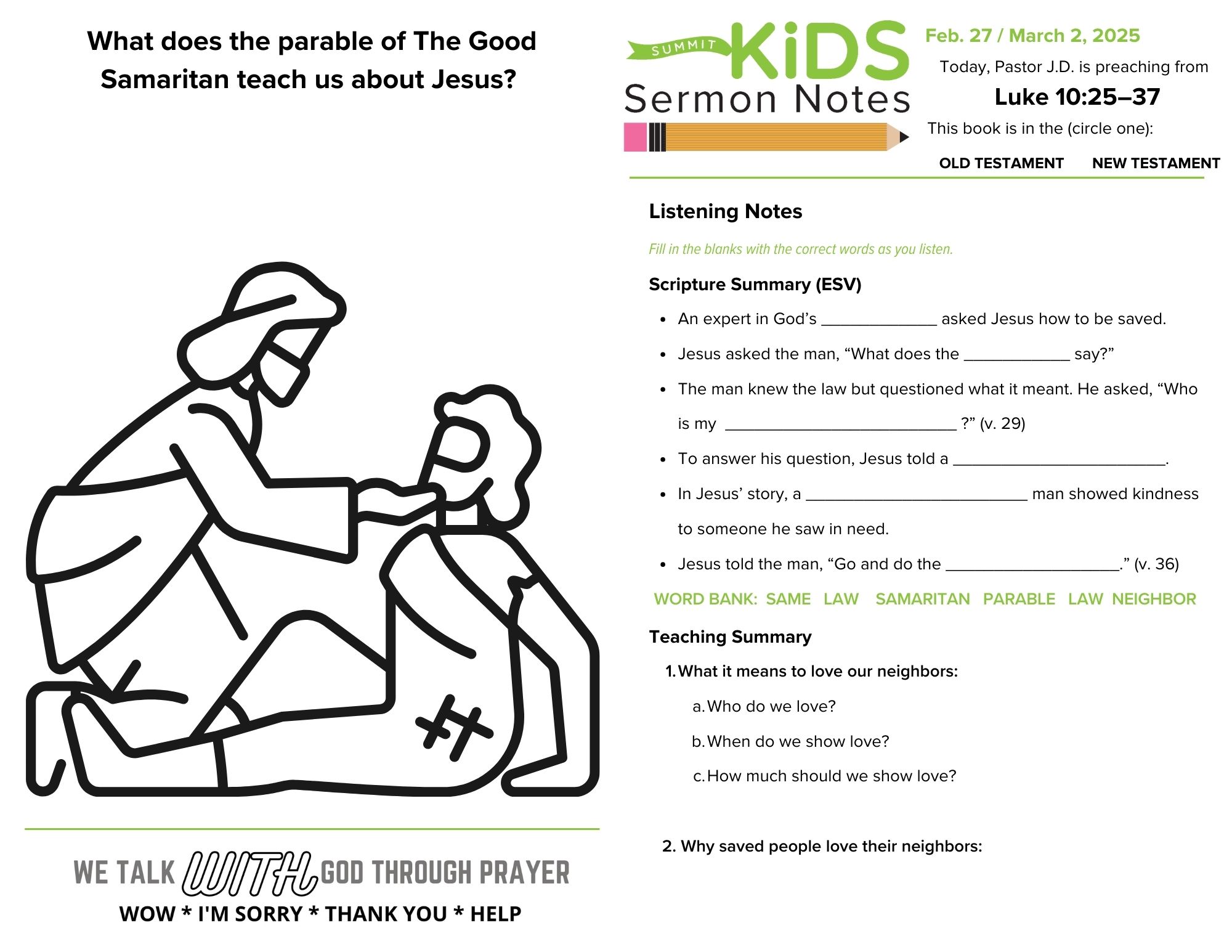 我们知道,在我们周围有很多需要帮助的人。我们知道,作为耶稣的追随者,我们应该为此做点什么。但是,困难往往在于不知道如何提供最好的帮助。在本周的《路加福音》第 10 章信息中,J.D. 牧师解读了好撒玛利亚人的比喻,这个故事很好地说明了对最脆弱的人表示同情如何反映了上帝的心。本周他可能会怎样呼召你去帮助满足你所遇到的人的需要呢?