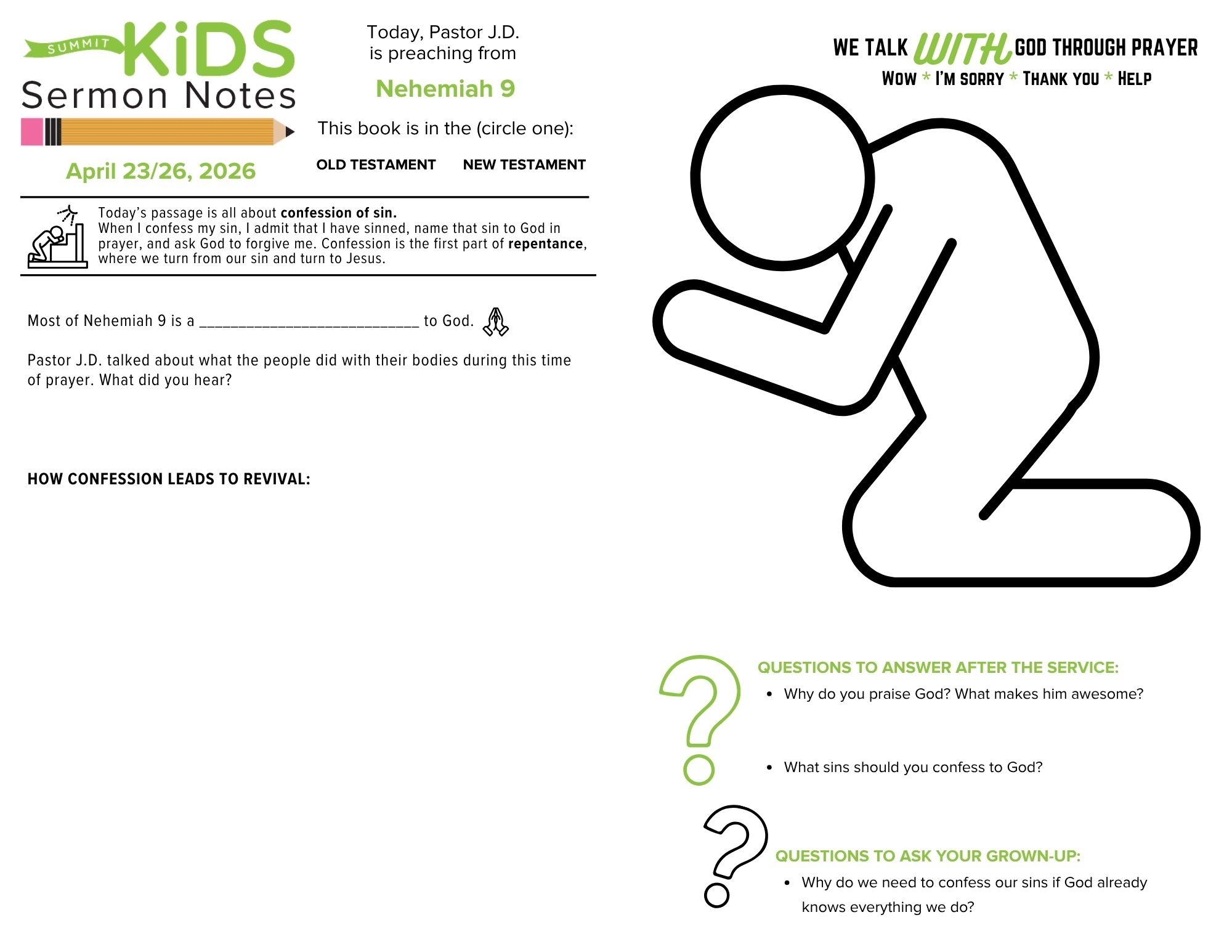 在跟随耶稣所需做的一切事情中,认罪或许是最难的一件事。真正的认罪需要谦卑和勇气——但促使你这样做的是你内心对上帝大能与同在的迫切渴求。在本周以尼希米记第9章为经文的信息中,J.D.牧师带领我们深入探讨利未人的祷告,并重点阐述了认罪的四个关键要素。 是的,这很难。但这绝对值得,而且最终,它会带来更新与复兴。
