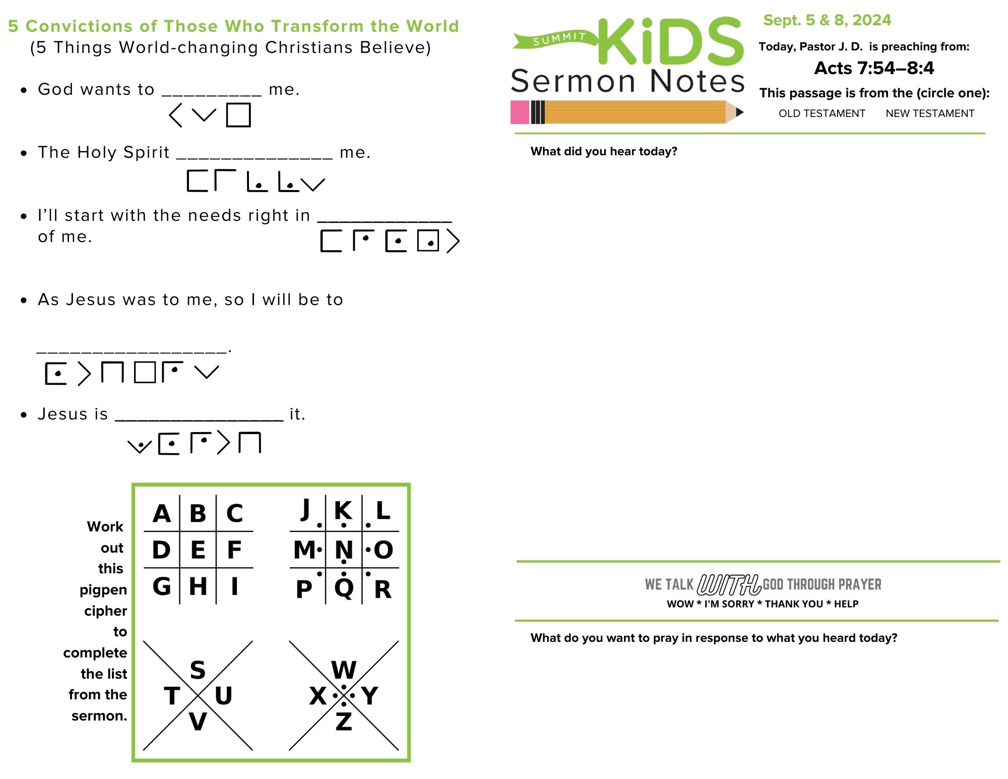 虽然《使徒行传》的前几章充满了洗礼和神迹,但全书的关键点--用石头打死司提反--显示了神如何使用普通信徒在逼迫中显示祂的大能并完成祂的使命。在本周的《使徒行传》第 7 章和第 8 章的信息中,J.D. 牧师鼓励我们思考神如何呼召我们推进福音的使命。当然,这对每个人来说都不尽相同。但耶稣的价值和福音的真理应该迫使我们与这个迷失和濒临死亡的世界分享,无论是在这里还是在海外。