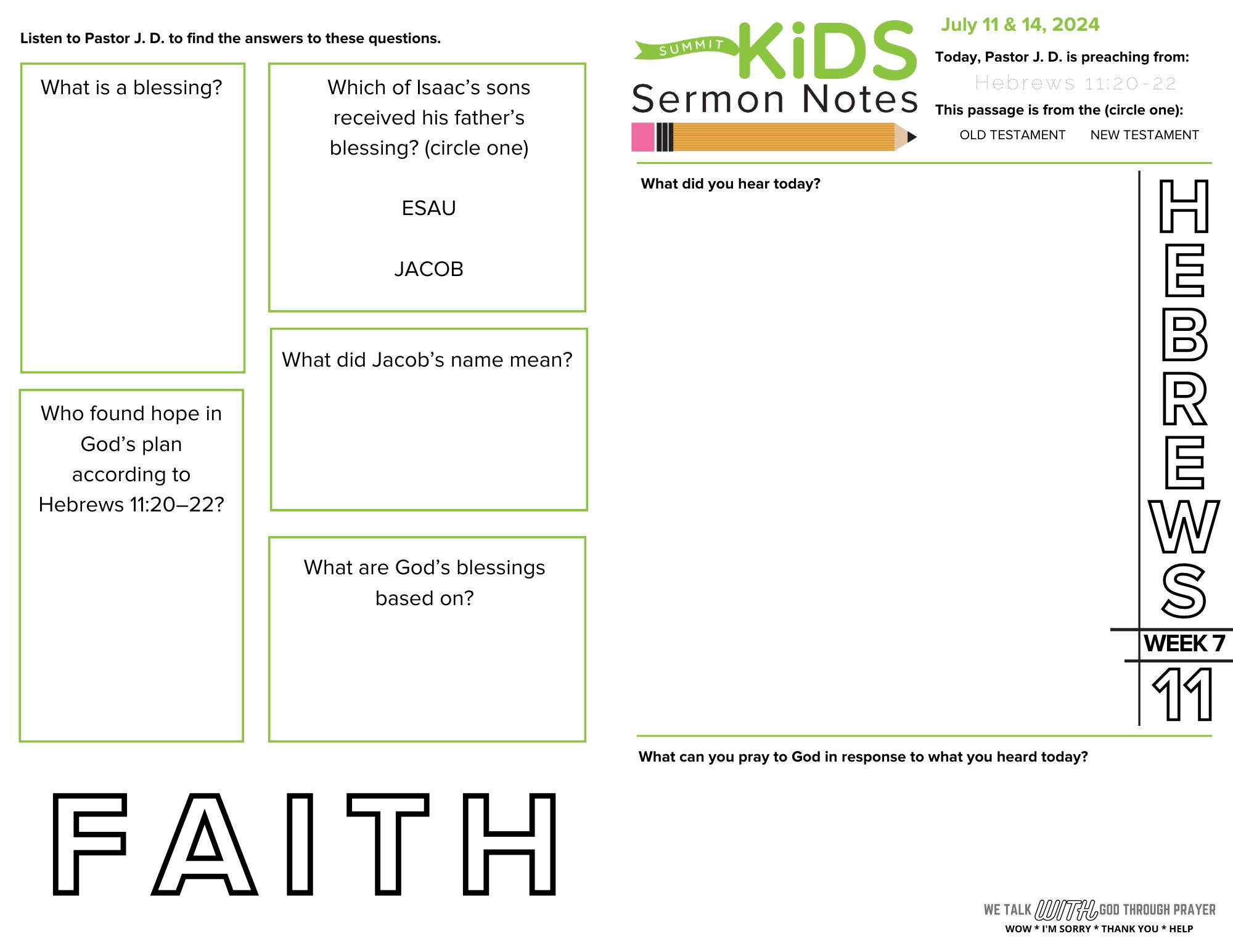 我们每个人心中都有一种呼唤被接纳、渴望被祝福的东西。虽然我们周围的文化都在竭力追求这种接纳,但福音书却说,上帝对我们的接纳完全是恩典的恩赐,是不劳而获的。在本周希伯来书 11 章的信息中,J.D. 牧师向我们展示了这一真理如何在以撒、雅各和约瑟身上生动地体现出来。尽管环境可能与此相反,但上帝的信实一直在运行,即使是在黑暗的日子里。