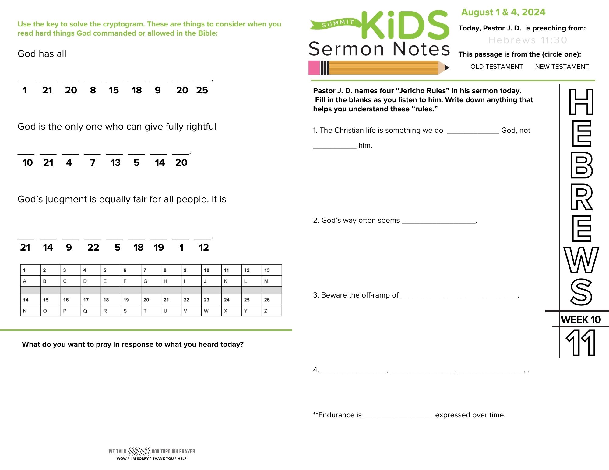 有时,我们很容易从以人为本的角度来阅读《圣经》,好像我们才是每段故事的主角。但这样做,我们就有可能忽略约书亚和耶利哥城等故事的更大意义。在本周希伯来书 11 章的信息中,J.D. 牧师向我们展示了约书亚生命中的这一关键时刻如何为我们提供了宝贵的一课:与其把我们的生活定位在试图让上帝 "站在我们这边",不如问问上帝想要做什么,以及我们怎样才能加入他的行列。