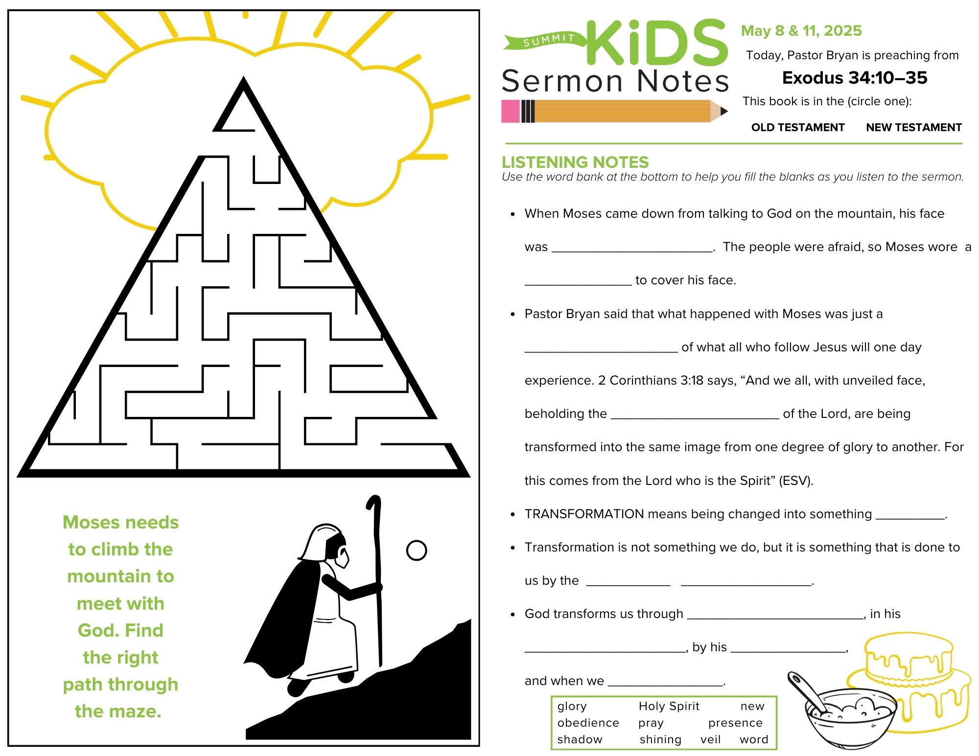 或多或少,我们都渴望改变,无论是身体层面还是属灵层面的改变。在本周出埃及记 34 章的信息中,布莱恩牧师带领我们回顾了发生在摩西身上的转变,这是在上帝面前度过的时光所带来的转变。现实是,真正的福音转变不是我们可以制造出来的。虽然我们可以为我们生命中的这种转变准备好环境,但最终还是圣灵带来了这种转变。当圣灵带来这种改变时,它就会向注视着我们的世界做出无比有力的见证。