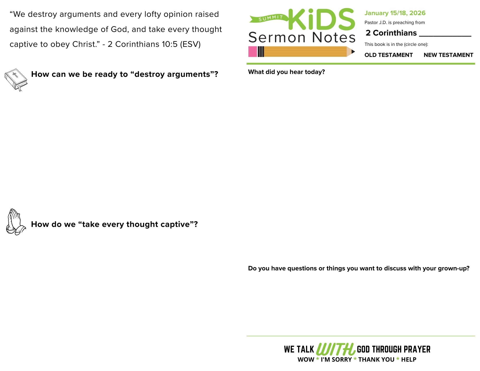 在我们生命中,将面临许多属灵的争战,无论是关乎自身成长、教养子女,还是见证他人归向基督。 问题在于,我们常常试图凭自己的力量打这些仗,而非倚靠神所赐的力量。在本周以《哥林多后书》10章为经文的信息中,J.D.牧师向我们阐明了为属灵争战做好充分装备的重要性——这装备始于祷告、浸泡在神的话语中,以及倚靠圣灵。