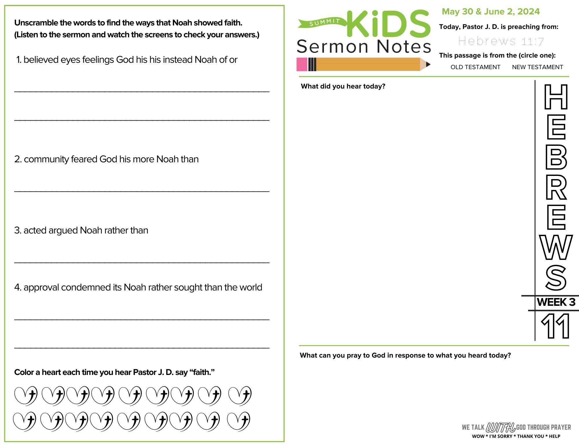 诺亚和方舟的故事虽然广为人知,但在当今社会却往往被许多人曲解。它绝非一个温馨的睡前故事,而是让我们看到了圣洁的上帝对罪恶的堕落所做出的回应。在本周希伯来书第 11 章的信息中,J.D. 牧师解释了挪亚的信心是如何引导他按照上帝的命令行事,而不惧怕周围社区的看法。同样,我们也被呼召表现出这样的信心:出于对神的敬畏,按照神的话语行事,并呼召他人也这样做。