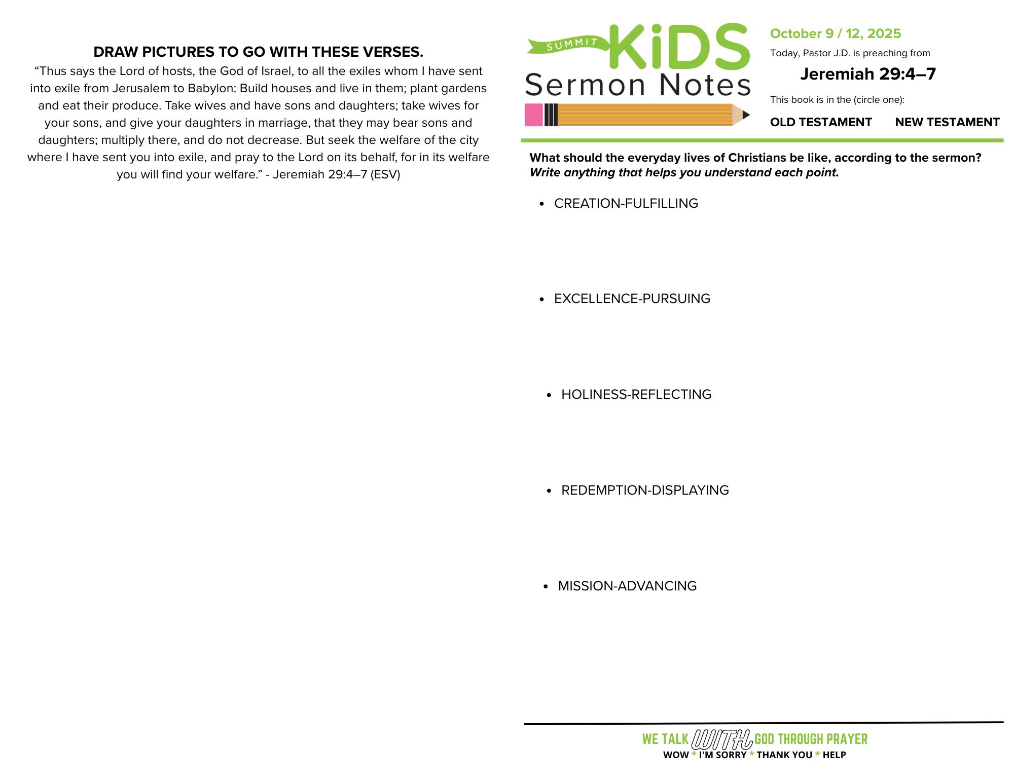 2025 年,勇敢、忠实地为耶稣作见证的人是什么样的?毕竟,在我们生活的时代,基督教越来越被视为一个问题,甚至是一个需要清除的障碍。在本周耶利米书 29 章的信息中,J.D. 牧师帮助我们看到,我们在城市的复兴中扮演着至关重要的角色。当我们以卓越、正直和恩典做好自己的工作时,我们不仅反映了福音,而且最终展示了神所希望的世界的样子。