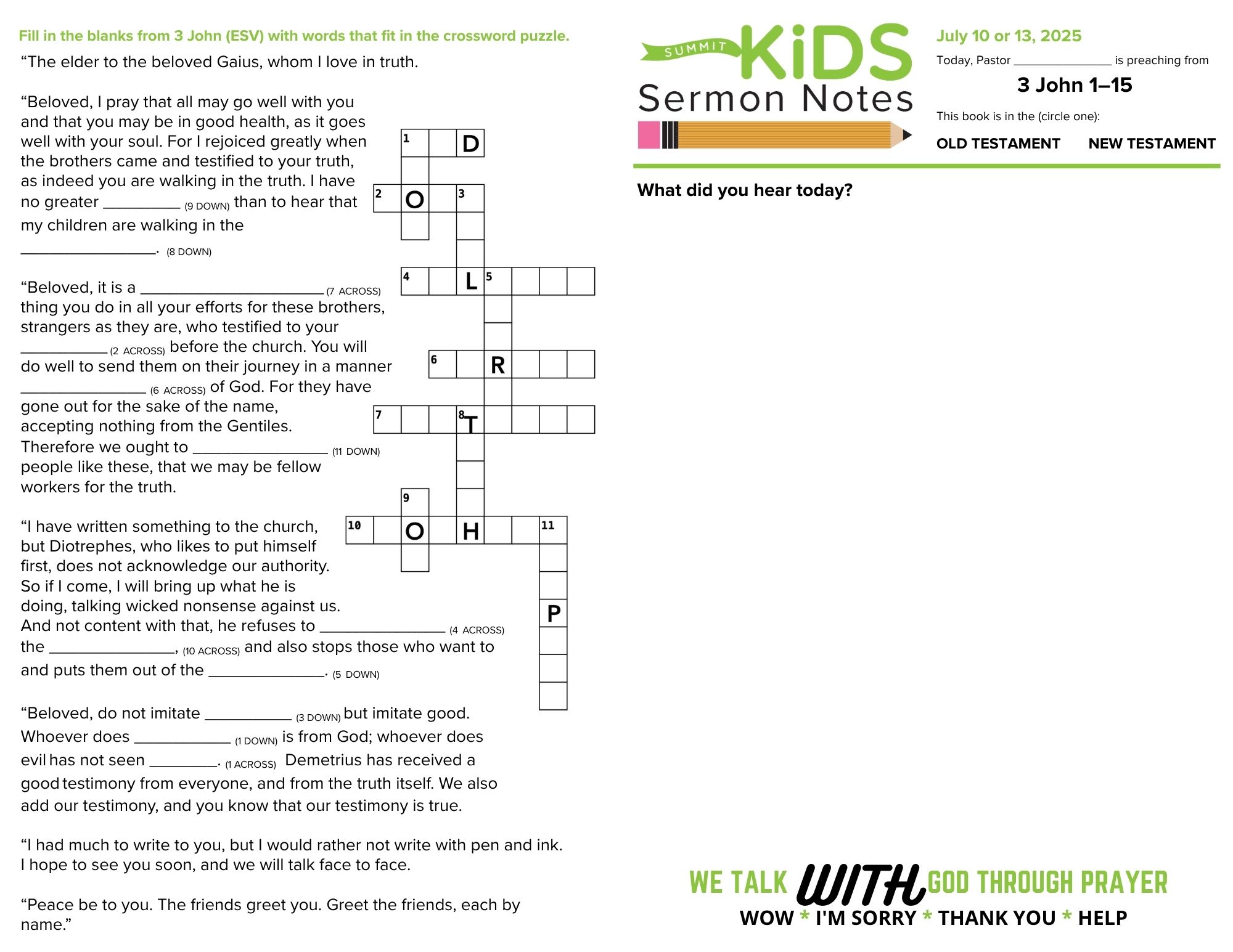 在当今高度科技化的社会中,写信的艺术在很大程度上已被淘汰。但是,花时间写一封私人信件所传达的信息是发短信所无法比拟的。在本周的约翰三书信息中,约翰牧师向我们展示了这样一封私人信件的价值。通过阅读使徒约翰写给盖乌斯的这封信,我们学到的是如何在真理中前行。当然,只有当我们了解上帝话语中的真理并与之保持一致时,才有可能做到这一点。