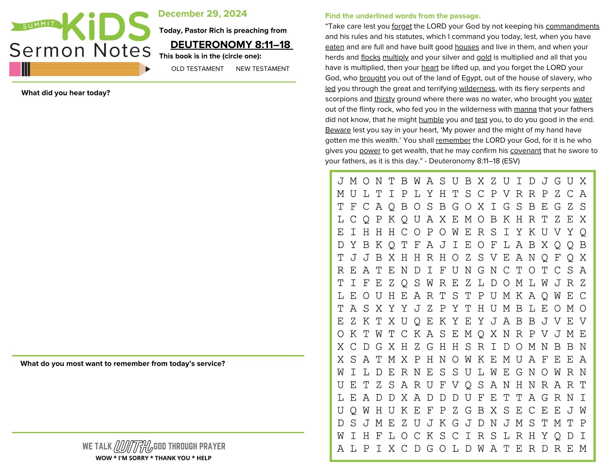 在《申命记》第 8 章的这篇简短信息中,里奇牧师强调了以色列人在准备进入应许之地时是如何被告诫不要忘记上帝的。同样,我们也应小心记住并感谢上帝的每一份恩赐,其中最大的恩赐就是耶稣。当我们记住 "各样美好完全的恩赐都是从上头来的 "时,我们必然会更加谦卑,更加认识到上帝的良善。